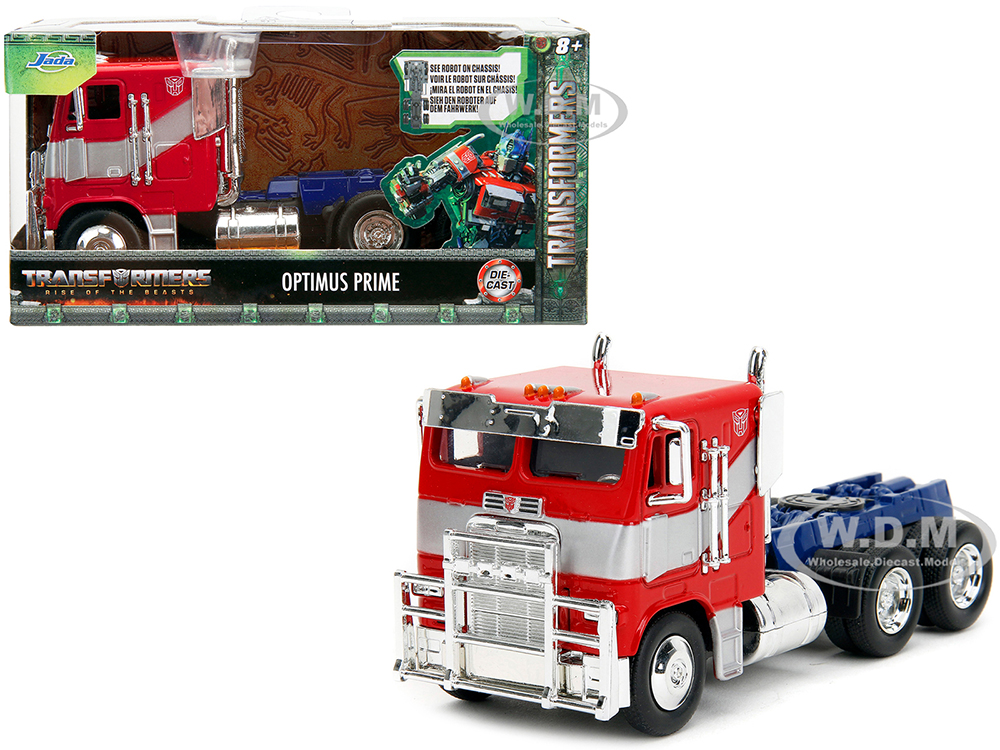 Optimus Prime Tractor Truck Red and Blue with Silver Stripes "Transformers Rise of the Beasts" (2023) Movie "Hollywood Rides" Series 1/32 Diecast Mod