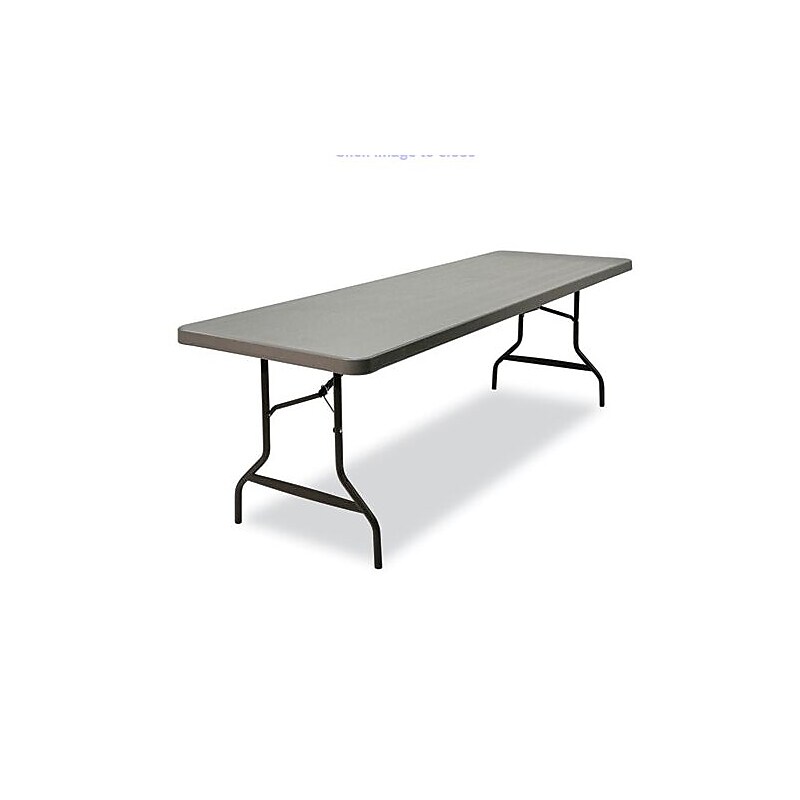 ICE65537 ICEBERG ENTERPRISESIndestrucTable Commercial Folding Table, Rectangular, 29",Top,Base/Legs. Contemporary in appearance and design. Easy to set up, take down and transport. Dent- and scratch-resistant blow-molded high-density polyethylene top. Sturdy, powder-coated steel-tubing legs and an all-steel base. Recessed leg channels for easy, compact, folded storage. Accommodates indoor and outdoor use. Ideal for foodservice, school and office environments as well as weddings, banquets and any number of special events. Protective rubber glides. Warranty: Manufacturer's limited 15-year warranty.