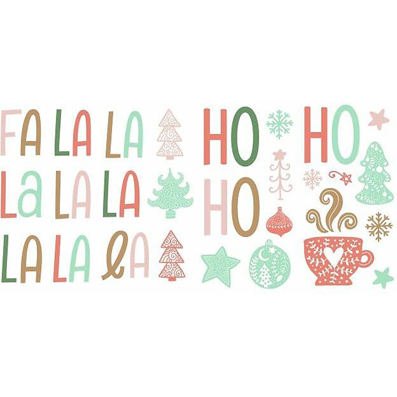 Dress up your home for the holidays with this eye-catching, colorful, and oh-so festive Fa La La La La peel-and-stick wall decal set from RoomMates. Go beyond the traditional red-and-green color palette with a festive mix of coral, light pink, and mint green. Great for jazzing up dining rooms, entryways, kitchens, classrooms, and any other holiday-themed rooms you may choose. The decals are easy to peel and stick! Remove, redecorate, and reposition without leaving sticky residue or damage behind on walls. Dress up your home for the holidays with this eye-catching set of colorful and oh-so festive wall decals. Great for jazzing up dining rooms, entryways, kitchens, classrooms, and any other holiday-themed rooms you may choose. Easy to use and backed by peel-and-stick technology. Go beyond the traditional red-and-green color palette with a festive mix of coral, light pink, and mint green. Includes decals range from 1. 9" x 1. 28" to 6. 26" x 3. 96". 27 wall decals per set. Great for use in bedrooms, classrooms, windows, doors, furniture, office, living spaces, and kitchens. Sticks best to smooth, clean surfaces. Reusable and can be easily repositioned. Residue-free and safe for walls. Made in the USA.