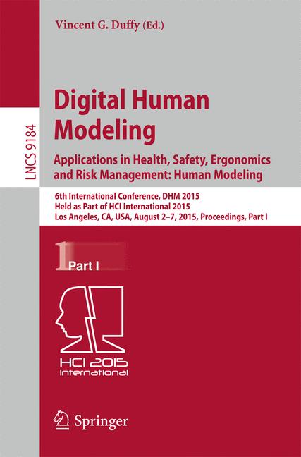 The two-volume set LNCS 9184-9185 constitutes the constitutes the refereed proceedings of the 6th International Conference on Digital Human Modeling and Applications in Health, Safety, Ergonomics and Risk Management 2015, held as part of the 17th International Conference on Human-Computer Interaction, HCII 2015, held in Los Angeles, CA, USA, in August 2015. The total of 1462 papers and 246 posters presented at the HCII 2015 conferences was carefully reviewed and selected from 4843 submissions. These papers address the latest research and development efforts and highlight the human aspects of design and use of computing systems. The papers thoroughly cover the entire field of human-computer interaction, addressing major advances in knowledge and effective use of computers in a variety of application areas. The total of 96 contributions included in the DHM proceedings were carefully reviewed and selected for inclusion in this two-volume set. The 44 papers included in this volume are organized in the following topical sections: modeling human skills and expertise; modeling human work and activities.