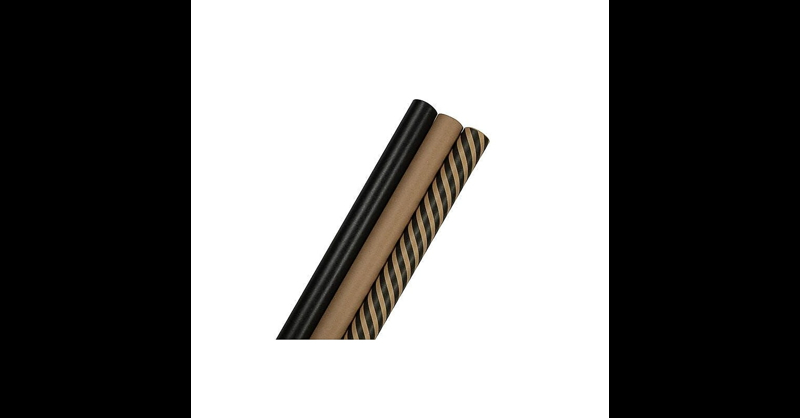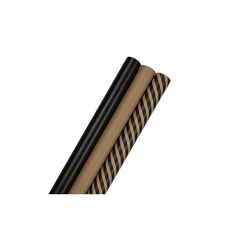 Get all the colorful wrapping paper you need with this Black Kraft Stripes & Solids Combo Kraft Wrapping Paper Set! Three rolls for a total of 87. 5sq ft of wrapping paper is included in this set. Start wrapping today!. Color: Black Kraft Stripes and Solids. Size: 87. 5 Square Feet Total. Quantity: 3 Rolls Per Pack.