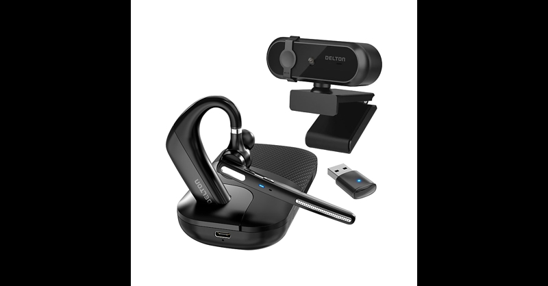 Delton Ultralight Executive Wireless Noise Canceling Bluetooth Headset with 1080p Webcam (DBTHEAD90XBTDLCAM)