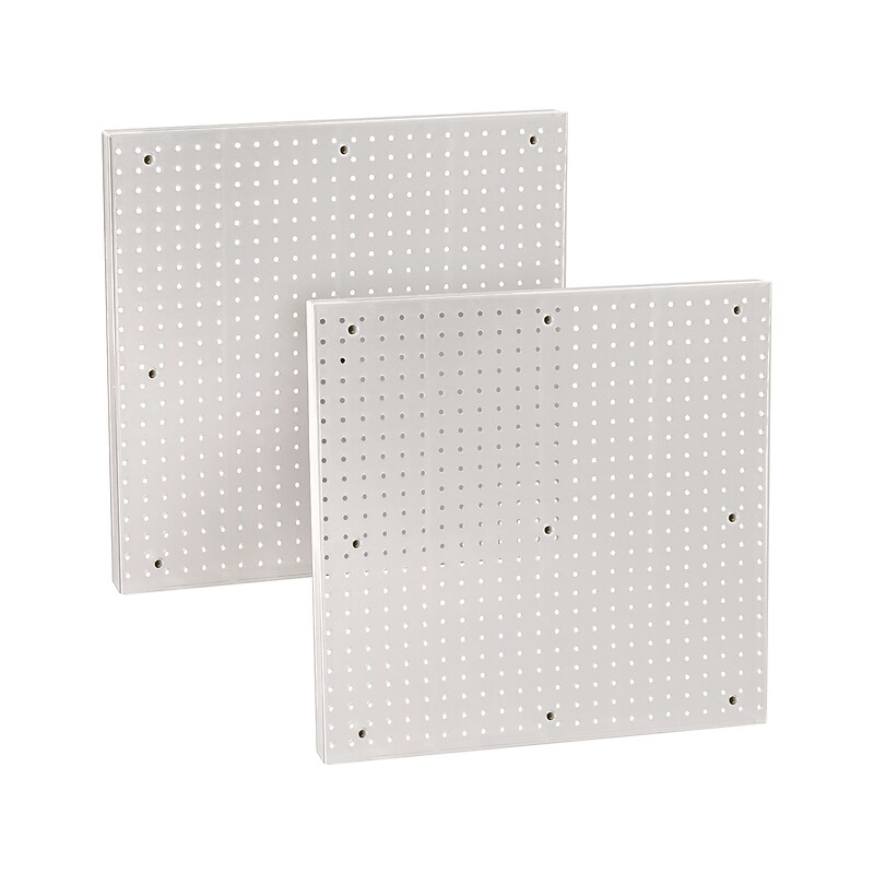 Customize your wall storage solution with the Azar one-sided pegboard wall panel. The perforated wall panel mounts to any flat surface. The pegboard panel is injection-molded, creating a single plastic unit that is strong and durable. This pegboard panel is high-quality and long-lasting. You can use it to organize the garage, retail shop, kitchen, office, closet, craft room, kids room, toy room, or industrial tool storage. The panel can be hung horizontally or vertically to best suit your organizational and space needs. Hardware and hooks are sold separately. The Azar retail pegboard wall panel can be used in stores for merchandising products on your walls! Available in many colors and sizes, choose the best color and size for you. One-sided pegboard wall panel is great to organize the garage, retail shop, kitchen, office, closet, craft room, kids room, toy room, or industrial tool storage. Plastic pegboard panel is made of high-impact styrene for strength and durability; comes in opaque solid Dimensions: 24"H 24"W 0. 88"D. Simply mount the pegboard panel to any flat surface horizontally or vertically to best suit your organizational and space needs. Pack contains two pegboard wall panels. Hardware and hooks are sold separately. Can be used in stores for merchandising products on your walls. Panel is 0. 13" thick.