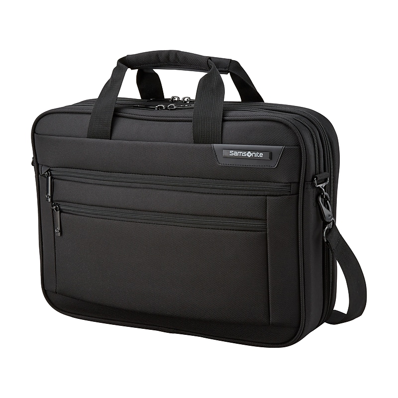 An update to Samsonite's iconic Classic collection. Featuring new logos, hardware, and lining, the Samsonite Classic Business 2. 0 aesthetic reflects a modern, tailored approach to business while still embodying a multifunctional, everyday appeal. This brief features a TSA-friendly design, which allows you to unzip and lay flat for easy screening, and a perfect-fit construction for laptop protection. Two-compartment laptop briefcase to keep all your business essentials organized on the go. Made of polyester and comes Adjustable, removable carry strap with comfort pad; wrapped bale handles provide comfort when carrying. Overall dimensions: 12"H x 16. 5"W x 4. 5"D. Exterior organization includes two front zippered pockets with one quick-access pocket for smaller items, one larger pocket with organization to store essentials, one lined phone pocket, two pen sleeves, and business card sleeves. Zippered storage pocket to keep items close and accessible. Perfect fit: adjustable system provides a custom fit for most 13"-15. 6" laptops. Storage Sleeve can be used for secondary device or important document storage. Three padded slip pockets offer storage for tech accessories (chargers, cords, mouse, etc. ). TSA/CPF construction: unzips to lay flat for fast and easy screening without removing the laptop. SmartSleeve: fits over most upright handles for hassle-free combination travel. ⚠ WARNING: This product can expose you to chemicals including Di(2-ethylhexyl) phthalate (DEHP), which is known to the State of California to cause cancer and birth defects or other reproductive harm. For more information go to www. P65Warnings. ca. gov.