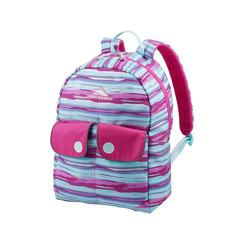 You're out there becoming more of who you are through moments of firsts: first day of school, first campout, first day on the job, first trip abroad. This is life's real journey, the transitions from one life phase to the next. And High Sierra is right there with you. Adorable has never been so durable before this cute Chiqui backpack. Adorable has never been so durable before this cute backpack. Made of polyester in a Watercolor Stripes pattern in shades ofand blue. Backpack size: small. Features a main compartment with tablet sleeve and accessory pocket, dedicated storage for tech and trinkets, and dual water bottle pockets. Dimensions: 14. 8"H x 10. 6"W x 5. 7"D. Comfort has never been cooler with straps and back panel with air mesh and foam. Clean your empty bag with a mix of mild soap and water; air-dry before use. Lifetime manufacturer limited warranty. ⚠ WARNING: This product can expose you to chemicals including Di(2-ethylhexyl) phthalate (DEHP), which is known to the State of California to cause cancer and birth defects or other reproductive harm. For more information go to www. P65Warnings. ca. gov.