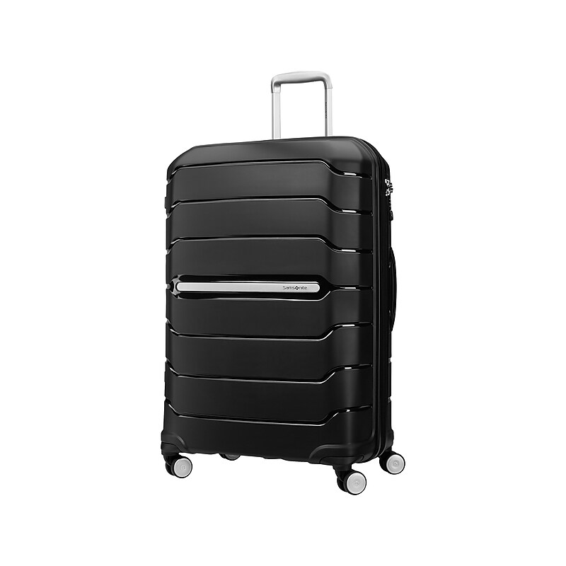 Extremely lightweight and durable, the Samsonite Freeform has been created to bring the strength and maneuverability our customers have come to expect combined with a truly unique design. With a more streamlined panel, an increased packing capacity, and thoughtfully integrated components, this lightweight carry-on offers a very spacious and effortless ride. Made of injection-molded polypropylene Zipper closure and TSA three-dial combination recessed lock keep items safe and secure. Overall dimensions: 31. 1"H x 20. 95"W x 13. 8"D. Features a cross ribbon and divider for easy packing, plus multiple pockets for managing belongings during travel. Integrated multistage aluminum pull handle for extra lightness. Retracting top and side carry handles remain protected when checking baggage. Recessed metal logo plate for a modern look. Double 360-degree wheels to increase maneuverability. Includes a built-in ID tag. Expandable for added capacity. Internal dimensions: 27. 6"H x 20"W x 13"D. Weight: 9. 59 lbs. 10-year manufacturer limited warranty. ⚠ WARNING: This product can expose you to chemicals including Di(2-ethylhexyl) phthalate (DEHP), which is known to the State of California to cause cancer and birth defects or other reproductive harm. For more information go to www. P65Warnings. ca. gov.