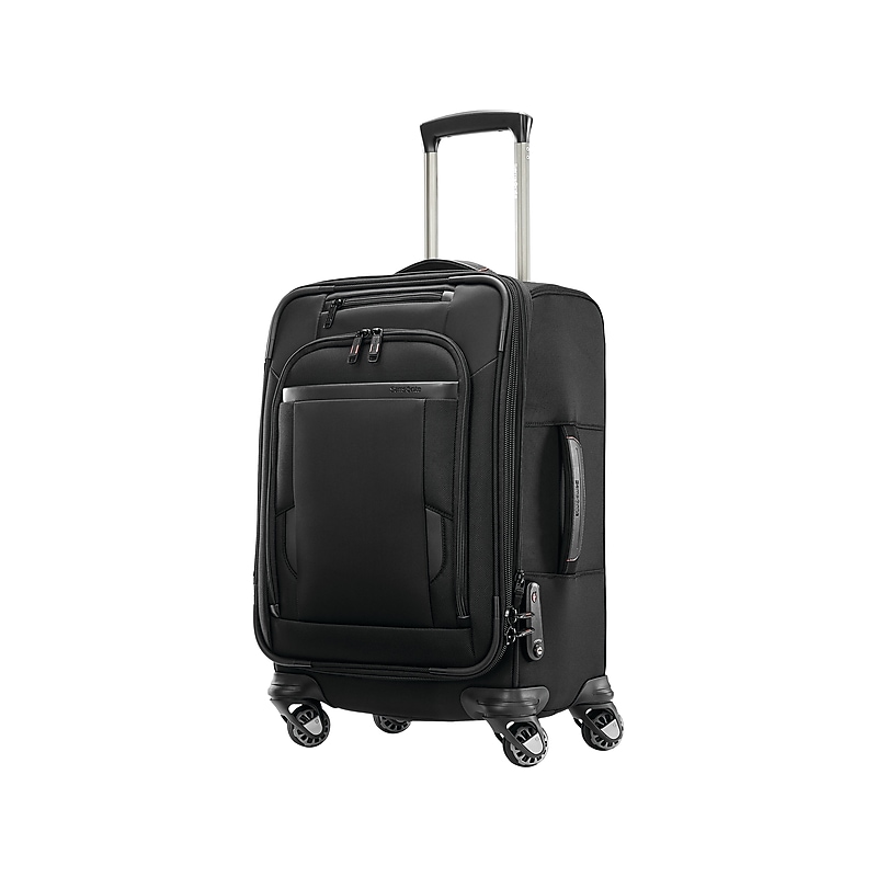 Travel with the Samsonite Pro bag that goes the distance with durable construction and upgraded conveniences. When you live out of your suitcase, details matter. Drop your phone in the dedicated pocket, and it charges wirelessly. Guard your identity with the RFID pocket. Hang clothes neatly in the trifold suiter, and pack liquids in a Wetpak pocket. All in the durable yet sophisticated bag. Made of premium ballistic nylon with reinforcements throughout Zipper closure with textured zipper pulls for a solid grip. Overall dimensions: 22. 4"H x 14. 25"W x 10"D. Features a Wetpak pocket for toiletries or gym clothes, an RFID pocket to protect sensitive data, and plenty of built-in pockets for organization. Integrated TSA approved lock for added security. Contoured grip handle for comfort and ease of use. Split Sphere DLX wheels for a smooth glide and maneuverability. Includes a trifold suiter. 1. 3" expansion for added capacity. Wireless charging pocket for easy power-ups. Features a USB port (battery not included). Leather touch points for distinctive style. Internal dimensions: 19. 5"H x 13. 5"W x 8"D. Weight: 8. 46 lbs. 10-year manufacturer limited warranty. ⚠ WARNING: This product can expose you to chemicals including Di(2-ethylhexyl) phthalate (DEHP), which is known to the State of California to cause cancer and birth defects or other reproductive harm. For more information go to www. P65Warnings. ca. gov.