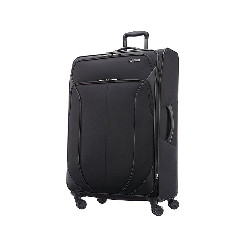 The American Tourister 4 Kix 2. 0 large spinner has the space you need for a six-day trip and beyond. You can pack everything but the kitchen sink in this lightweight big guy. Rugged polyester with carbon fiber trim accents and gunmetal hardware create a subtle and sophisticated finished look. Adjustable ergonomic trolley grip with carbon fiber texture ensures sturdy handling. Overall dimensions: 32. 5"H x 20"W x 12"D. Features a capacious interior, including a modesty pocket, a mesh zipped door pocket, and elastic tie tapes. Easy-to-use large zipper pulls. Rolls confidently with dual wheels that are tested against wear and tear, delivering stability and comfort. Case expands 1" for added packing capacity. Weight: 10. 3 lbs. 10-year manufacturer limited warranty. ⚠ WARNING: This product can expose you to chemicals including Di(2-ethylhexyl) phthalate (DEHP), which is known to the State of California to cause cancer and birth defects or other reproductive harm. For more information go to www. P65Warnings. ca. gov.