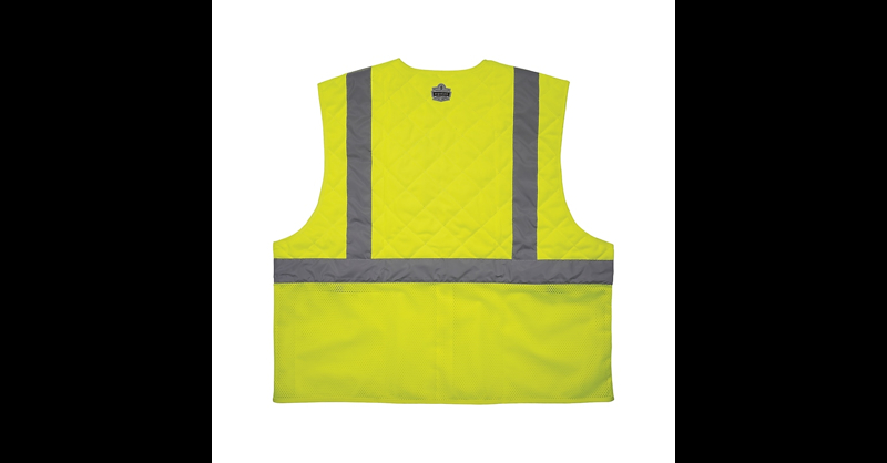 The Ergodyne Chill-Its 6668 high-visibility safety cooling vest is made with advanced polymer-embedded technology that quickly activates with water to provide hours of core cooling relief. The vest consists of three layers: an ANSI/ISEA 107 Type R, Class 2 high-visibility shell; polymer-embedded mid layer; and a water-repellent liner to help keep the wearer dry. This comfortable cooling vest is designed to be lighter and less bulky than most cooling vests on the market. Breathable mesh along the bottom of the vest reduces weight, enhances airflow, and prevents excess water from dripping onto clothing. Loops along the interior of the neckline allow the wearer to insert cooling towels for additional cooling relief along the neck. Also, the vest features two lower interior pockets for storage, and a zipper closure for easy on/off. For best results, wear this body cooling vest over a T-shirt. The water-repellent liner keeps the interior as dry as possible when activated, though the wearer should expect to feel some dampness/wetness. Heat-related illness continuously ranks among the top causes of worksite accidents and fatalities. Evaporative cooling technologies such as embedded polymers are a simple, effective, and comfortable solution for heat stress prevention. Similar to how sweat cools the body, evaporative technologies use an external water source to draw heat away, helping regulate body temperature while providing cool relief. When activated, this cooling safety vest is comfortable and refreshing for even the hottest days of the year. Comfortable cooling vest designed to provide hours of core cooling relief. Size: (65" x 28. 5"). Made of polymer and mesh color. Meets or exceeds the ANSI/ISEA 107 Type R standard. Polymer-embedded cooling technology quickly activates for up to 4 hours of relief from the heat. High-visibility shell compliant with 2" reflective tape for low-light visibility. Breathable mesh bottom reduces weight, enhances airflow, and prevents excess water from dripping onto clothing. Soak in water for 2-5 minutes to activate. Water-repellent lining helps keep the wearer dry. Loops along neckline to hold cooling towels for advanced cooling. Zipper closure for easy on/off. Features two lower interior pockets for storage. Customize with your unique logo, pattern, or slogan.