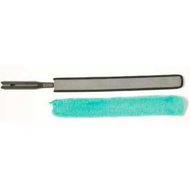 Rubbermaid Hygen Microfiber Flexible Dusting Wand Microfiber Flexible High-Reach Duster is a flat, 20"L wand that reaches into narrow, hard-to-reach spaces. Microfiber duster effectively removes dust, dirt and grime. Flexible wand conforms to irregular surfaces. Dust wand features binding for easy threading of dusting sleeve. Quick connect handle converts hand duster into high duster. Replacement sleeves are available. 28-3/4" long. Sold in package quantity of 6. - Pkg Qty 6.