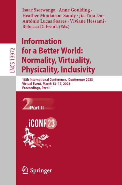 This two-volume set LNCS 13971 + 13972 constitutes the refereed proceedings of the 18th International Conference on Information for a Better World: Normality, Virtuality, Physicality, Inclusivity, held in March 2023. The 36 full papers and the 46 short papers presented in these proceedings were carefully reviewed and selected from 197 submissions. They cover topics such as: Archives and Records, Behavioral Research, Information Governance and Ethics, AI and Machine Learning, Data Science, Information and Digital literacy, Cultural Perspectives, Knowledge Management and Intellectual Capital, Social Media and Digital Networks, Libraries, Human-Computer Interaction and Technology, Information Retrieval, Community Informatics, and Digital Information Infrastructure.