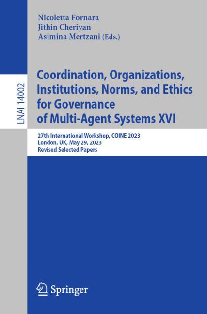 This book constitutes the refereed proceedings of the 27th International Workshop on Coordination, Organizations, Institutions, Norms, and Ethics for Governance of Multi-Agent Systems, COINE 2023, held in London, UK, on May 29, 2023 (co-located with 22nd International Conference on Autonomous Agents and Multi-Agent Systems (AAMAS)). This book contains 10 full papers which are the extended and revised versions of the papers accepted to the workshop. The papers were carefully reviewed and selected from 13 submissions. They are organized in topical sections as follows: Norms, Social contracts, Institutions, and Privacy; Studies on the notion of Value; and Argumentation and Conventions.