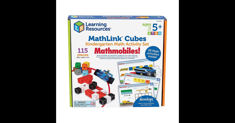 Let's build new kindergarten math skills, one cube at a time. This imaginative take on Learning Resources MathLink Cubes Kindergarten Math Activity Set: Mathmobiles! helps kids build counting, sorting, and other essential kindergarten math skills through fun vehicle-themed games and activities. With the set to work with, kids can also explore their imaginations through hands-on, open-ended play. Includes reusable storage box. Cubes activity set helps kids ages 5 to 10 build counting, sorting, and other essential kindergarten math skills through fun vehicle-themed games and activities. Comes multicolored. Set contains: 115 pieces, 30 math activities, and reusable storage box. Perfect for little STEM learners. Warning: choking hazard (small parts); not for children under three years.