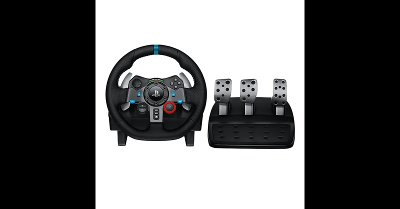 All your controls are where you can reach them. The D-Pad, buttons and paddle shifters are incorporated into the racing wheel. LED indicator lights positioned just above the center of the wheel tell you exactly when to up- or down-shift. You maintain maximum acceleration without taking your eyes off the track. A 24-point selection dial and the +/- buttons on the front of the wheel let you further fine-tune your driving preferences. Feel your tires on every turn and type of terrain, sense under- or over-steer drifting and more. Powerful dual-motor force feedback realistically simulates force effects so you can respond with precision. Driving Force handles the stress of racing action and is built for long-lasting reliability. G29 has solid steel ball bearings in the wheel shaft and stainless steel paddle shifters and pedals. The race wheel is covered in high-quality, hand-stitched leather, giving it the look and feel of a high-performance race car wheel and giving you a more comfortable, durable experience. Gaming Steering Wheel, For PlayStation 3 And PlayStation 4. 10. 24" Racing Wheel, 3-Pedal Set. Connectivity: Cable. Box Dimensions: 17"L x 13"W x 12"H. PlayStation 3 And PlayStation 4. Black, Wheel Spokes: Anodized aluminum, Wheel Cover: Hand-stitched leather, Steering Shaft: Steel, Shifter Paddles: Brushed stainless steel, Mounting Clamps: Glass-filled nylon, Pedal Frames & Arms: Cold-rolled steel, Pedal Faces: Brushed Stainless steel, Pedal Piston Sleeves: Polyoxymethylene thermoplastic (POM). Racing Wheel with Pedals. Cable. 24-Point Selection Dial | +/- Buttons. Get an immersive racing experience with the Logitech G29 Driving Force Racing Wheel.
