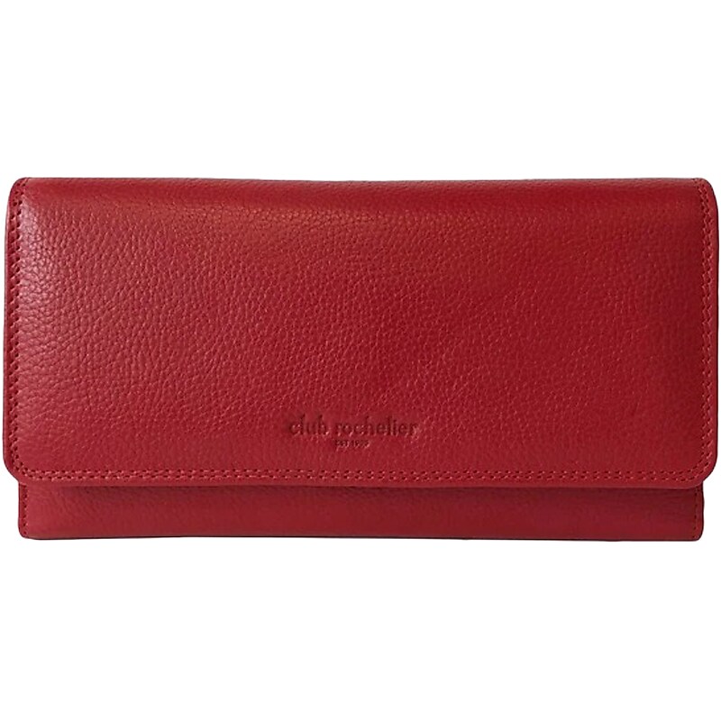 Club Rochelier Leather Clutch Wallet with Checkbook and Gusset, Red ()