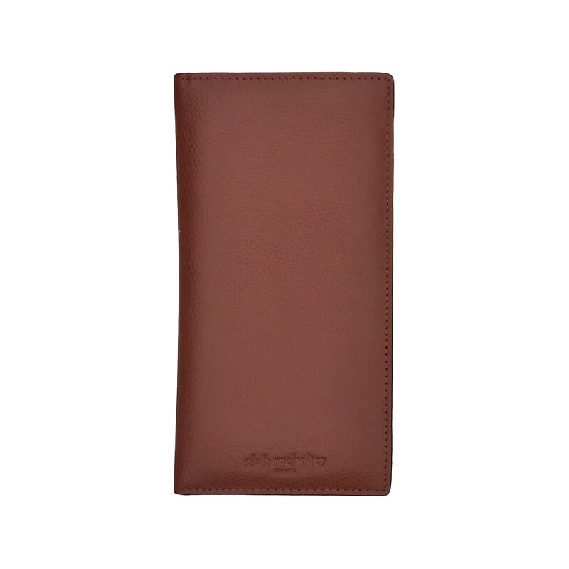 This Club Rochelier checkbook clutch wallet is a combination of classic design and organized function. Open vertically to reveal 11 credit card slots, multifunctional pockets, and so much more. Features two billfold compartments, a pen loop, and has ample space to keep you organized. Comes boxed for easy gift giving. Women's checkbook clutch wallet. Made of genuine leather in brown. Dimensions: 3. 54"H x 7. 08"W x 0. 25"D. Interior features: 11 credit card slots, four slot pockets (two billfold), one pen loop. Comes in a handsome gift box.