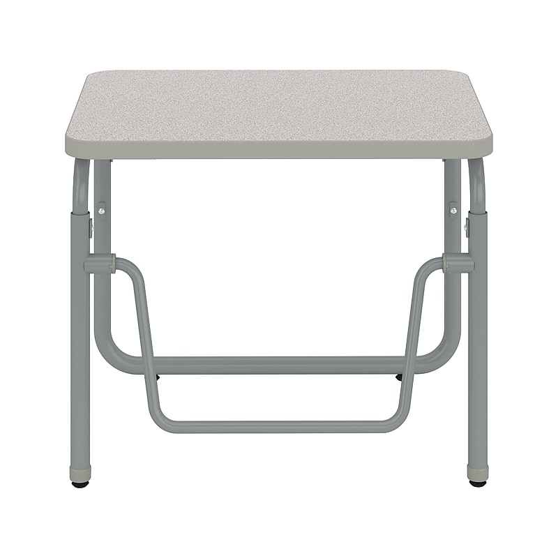 Keep students active while they learn with this versatile sit-to-stand Safco AlphaBetter heightadjustable student desk. A pendulum footrest allows students to redirect excess energy and continue to move, even as they sit, providing ergonomic support, increasing comfort, and promoting cardiovascular health. Great for boosting productivity and focus, this student desk has the added benefit of optional casters for better mobility throughout the classroom. The 22"-30" desk accommodates K-12th grade students, as well as adults, at seated height, and K-4th grade students at standing height. Versatile sit-to-stand height-adjustable student desk comfortably accommodates students as they work or sketch ideas. Durable, clean design with powder-coated steel frame and high-pressurelaminate with 3mm edge banding. Dimensions: 22"-30"H x 27. 75"W x 19. 75"D. Meets or exceeds GREENGUARD standard. Assembly required. Features a pendulum footrest, providing ergonomic support, increasing comfort, and promoting cardiovascular health. Highly flexible with adjustable nylon glides, optional casters, and adjustable desktop. Accommodates K-12th grade students, as well as adults, at seated height and K-4th grade students at standing height. Health-positive design with height adjustability and pendulum footrest promotes constant movement.
