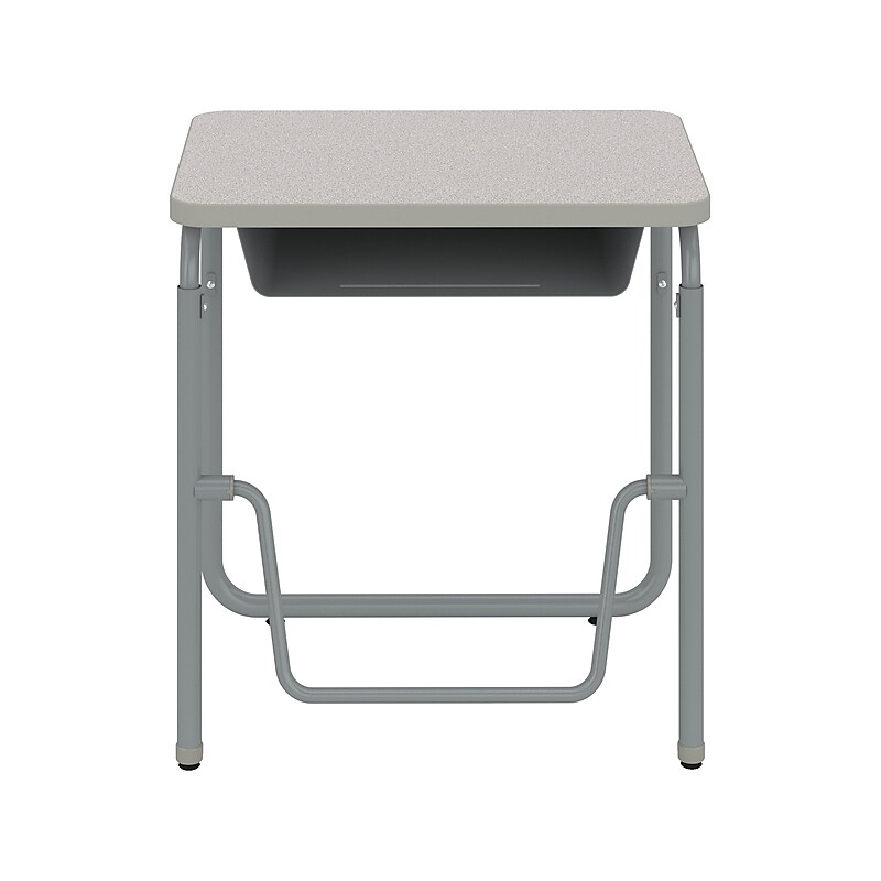 Encourage healthy movement and provide convenient storage with the Safco AlphaBetter height-adjustable student desk that features a high-pressure laminate top and an under-surface book box. This desk comfortably accommodates students as they work or sketch ideas. A pendulum footrest allows students to redirect excess energy and continue to move, even as they sit, providing ergonomic support, increasing comfort, and promoting cardiovascular health. Great for boosting productivity and focus, this student desk has the added benefit of optional casters for better mobility throughout the classroom, and a convenient book cubby right beneath the desktop. The 29"-43" desk accommodates students in 5th grade and up, along with adults, at seated and standing heights. Versatile sit-to-stand height-adjustable student desk comfortably accommodates students as they work or sketch ideas. Durable, clean design with powder-coated steel frame and high-pressurelaminate with 3mm edge banding. Dimensions: 29"-43"H x 27. 75"W x 19. 75"D. Store books and personal items with book box beneath the desktop. Meets or exceeds GREENGUARD standard. Assembly required. Features a pendulum footrest, providing ergonomic support, increasing comfort, and promoting cardiovascular health. Highly flexible with adjustable nylon glides, optional casters, and adjustable desktop. Accommodates students in 5th grade and up, along with adults, at seated and standing heights. Health-positive design with height adjustability and pendulum footrest promotes constant movement.