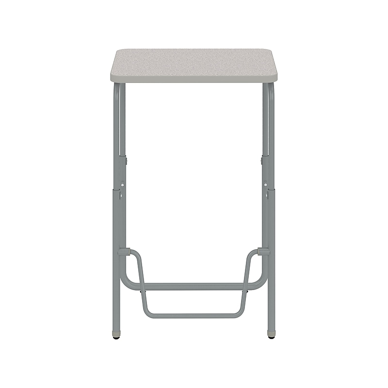 Help students stay productive and focused with the Safco AlphaBetter height-adjustable student desk. This desk comfortably accommodates students as they work or sketch ideas. A pendulum footrest allows students to redirect excess energy and continue to move, even as they sit, providing ergonomic support, increasing comfort, and promoting cardiovascular health. Great for active classroom environments, this student desk has the added benefit of optional casters for better mobility throughout the classroom. The 29"-43" desk accommodates students in 5th grade and up, along with adults, at seated and standing heights. Versatile sit-to-stand height-adjustable student desk comfortably accommodates students as they work or sketch ideas. Durable, clean design with powder-coated steel frame and high-pressurelaminate with 3mm edge banding. Dimensions: 29"-43"H x 27. 75"W x 19. 75"D. Meets or exceeds GREENGUARD standard. Assembly required. Features a pendulum footrest, providing ergonomic support, increasing comfort, and promoting cardiovascular health. Highly flexible with adjustable nylon glides, optional casters, and adjustable desktop. Accommodates students in 5th grade and up, along with adults, at seated and standing heights. Health-positive design with height adjustability and pendulum footrest promotes constant movement.