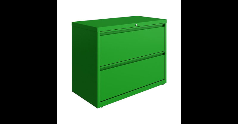 This 36 in. wide 2 drawer commercial grade lateral filing cabinet is designed for heavy duty use, yet looks great in any office. Precision ball-bearing suspension allows for quiet use in your busy office environment. Fully assembled steel construction with reinforced base. Non-porous surface is easy to clean. Interlock system prevents tipping by only allowing one drawer open at a time. Dual lock bars and core-removable lock come standard. Unit includes hang rails, magnetic label holders, and four adjustable leveling glides. Greenguard Gold certified for indoor air quality. Meets or exceeds ANSI-BIFMA standards. TAA compliant. Limited Lifetime Warranty. Two-drawer lateral file cabinet holds letter-, legal-, or A4-size documents. Comes in screaming green and made of steel. Dimensions: 28"H x 36"W x 18. 63"D. Commercial-grade ball bearing suspension allows fully loaded drawers to open with ease. Lock included. Drawer interlock system inhibits tipping over. Meets or exceeds ANSI/BIFMA and GREENGUARD Gold standards. Ships fully assembled. Durable steel construction with nonporous surface is easy to clean and disinfect. Dual lock bars secure both sides of the drawers. Full-width J-shaped pull handles. Unit includes hang rails, magnetic label holders, and four adjustable leveling glides. TAA compliant. Lifetime manufacturer limited warranty. Discover ultimate organization with this commercial grade lateral filing cabinet: designed to elevate your office while providing functionality. Safety is paramount with an interlock system to prevent tipping and a core-removable lock for secure storage. Certified greenguard gold for indoor air quality and backed by a limited lifetime warranty.