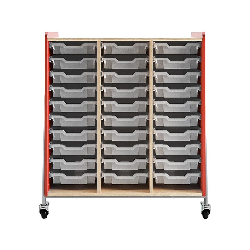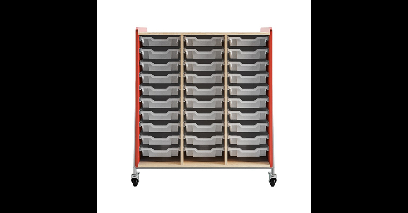 Keep supplies tidy and close by with the mobile 48"H triple-column Whiffle Typical 10 storage cart. Easy-to-remove 3"H totes are tough enough to withstand the rigors of any environment while providing ample space for storage. The multifunctional mobile design features a laminate work surface and a magnetic, dry-erase laminate back, so you can use it to house a laptop or display ideas. Once you're done, simply roll it out of way on the unit's heavy-duty swiveling casters, which lock into place for safety. Mobile, versatile triple-column storage is perfect for classroom, makerspace, or office. Built to last with 0. 75" thick particleboard with thermally fused laminate on both sides, comes Dimensions: 48"H 43. 25"W 19. 75"D. Assembly required. Includes an HPL work surface, magnetic, dry-erase laminate on the back, and storage. Designed for durability with a powder-coated frame, 2mm PVC edge banding on side panels and top work surface, and 1mm PVC edge banding on remaining parts. Helps you stay organized with 30 3"H totes (10 in each column). Allows for mobility with four heavy-duty, 360-degree swivel casters, two locking and two non-locking. Provides cable management with three grommet holes at the bottom of the unit. Bin dimensions: 3"H 12. 25"W 16. 75"D. ⚠ WARNING: This product can expose you to chemicals including Di(2-ethylhexyl) phthalate (DEHP), which is known to the State of California to cause cancer or birth defects or other reproductive harm. For more information go to www. P65Warnings. ca. gov/furniture.