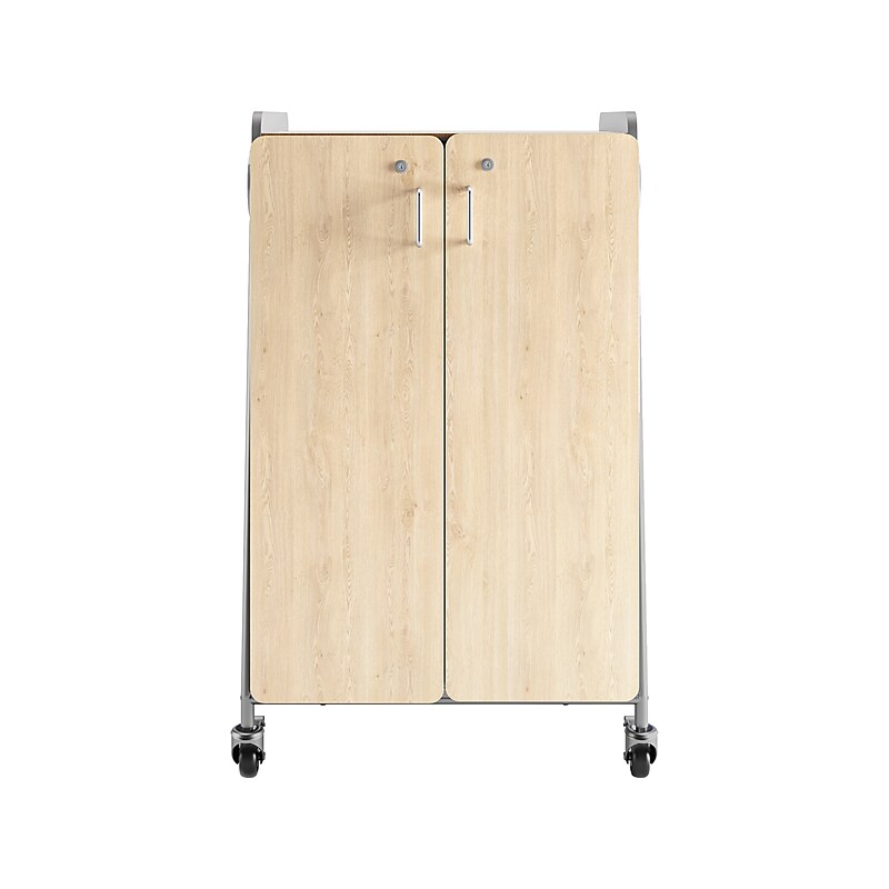 Keep your office or classroom neat and organized with the Whiffle Typical 14 double-column 48"H mobile storage cart. Easy-to-remove 6"H and 3"H totes and shelves are tough enough to withstand the rigors of any environment while providing ample space for storage. The multifunctional mobile design features two doors, a laminate work surface, and a magnetic, dry-erase laminate back, so you can use it to house a laptop or display ideas. Once you're done, simply roll it out of way on the unit's heavy-duty swiveling casters, which lock into place for safety. Mobile, versatile double-column mobile storage is perfect for classroom, makerspace, or office. Made of 0. 75" thick particleboard with thermally fused laminate (TFL) on both sides and comes Dimensions: 48"H 30"W 19. 75"D. Assembly required. Includes an HPL work surface, magnetic, dry-erase laminate on the back, double lockable doors, and storage. Designed for durability with a powder-coated steel frame, 2mm PVC edge banding on side panels and top. Helps you stay organized with two 6"H totes (one at the bottom of each column); 10 3"H totes (five in the middle of each column); and four shelves (two at the top of each column). Allows for mobility with four heavy-duty, 360-degree swivel casters, two locking and two non-locking. Provides cable management with two grommet holes at the bottom of the unit. Bins dimensions: 3"H 12. 25"W 16. 75"D and 6"H 12. 25"W 16. 75"D. ⚠ WARNING: This product can expose you to chemicals including Di(2-ethylhexyl) phthalate (DEHP), which is known to the State of California to cause cancer or birth defects or other reproductive harm. For more information go to www. P65Warnings. ca. gov/furniture.