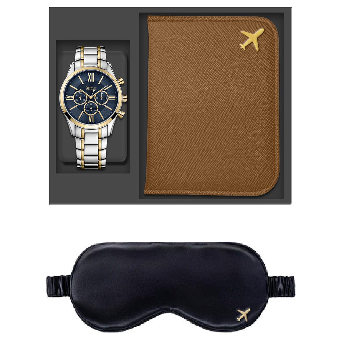 Mens American Exchange Watch/Eye Mask/Passport Cover Set