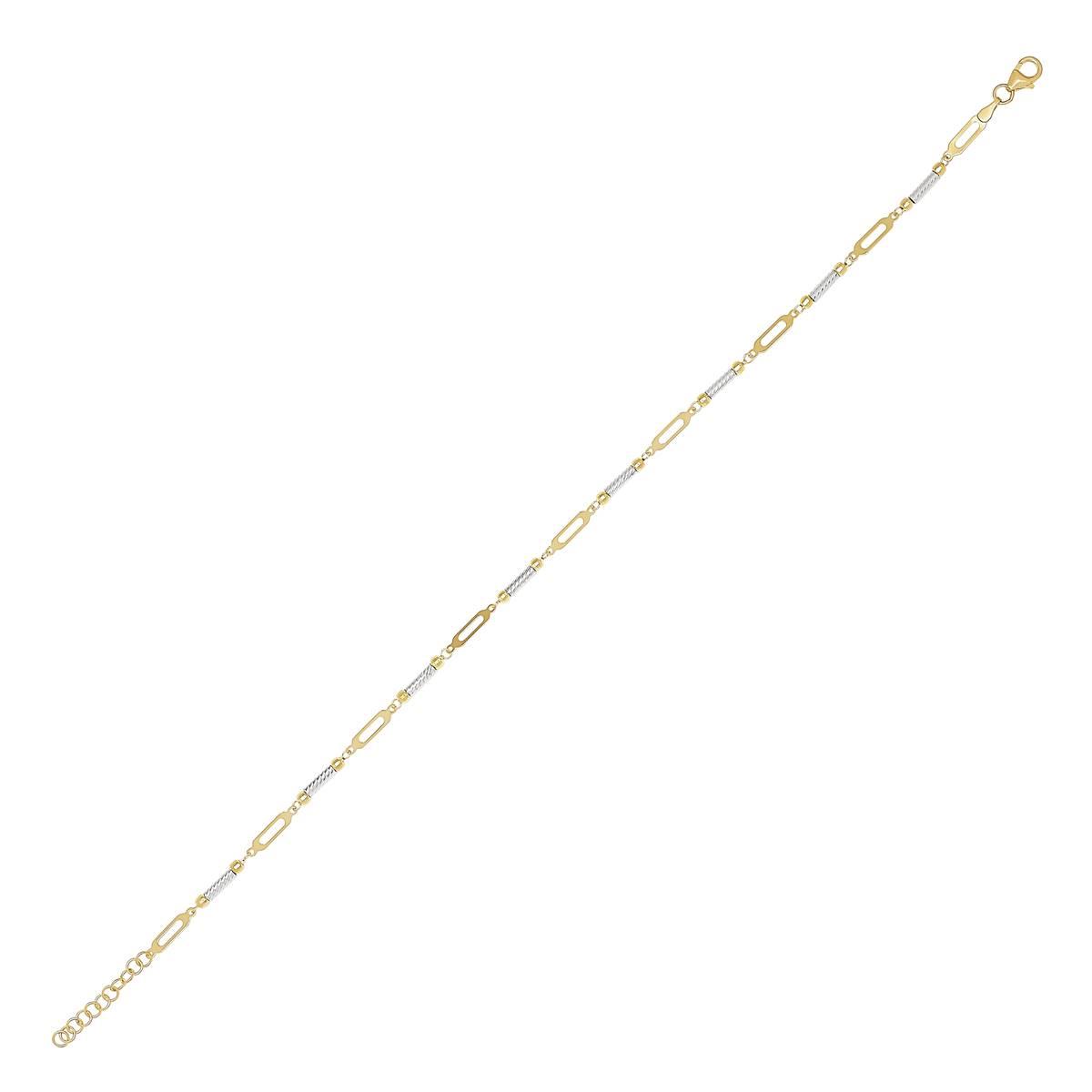 Gold Classics(tm) Yellow & White Gold Solid Oval Stamp & Tube Anklet