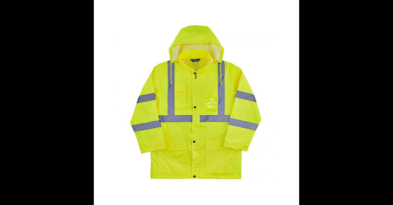 The Ergodyne GloWear 8366 lightweight high-visibility rain jacket is designed with waterproof materials (150D polyester oxford with a polyurethane (PU) coating) and fully taped seams for reliable protection in the face of stormy weather. This lightweight reflective rain jacket easily fits over workwear without sacrificing mobility. Fully taped seams are bonded to the jacket to keep water from sneaking in, while a vented cape back allows heat and moisture to escape for added breathability. An attached drawstring hood can be stowed away when not needed. Reflective tape on chest and arms adds visibility at night or in low-light conditions. It's the great lightweight, waterproof work jacket for those working in road construction, utilities, construction, emergency response, airline, railway, or survey crews. Lightweight reflective rain jacket easily fits over workwear without sacrificing mobility. Designed with waterproof materials (150D polyester Oxford fabric with a polyurethane (PU) coating), comes color. Size: medium. Features two lower-front pockets with snap flaps, a cell phone chest pocket, and a clear ID holder. Meets or exceeds ANSI/ISEA 107-2015 Type R, Class 3, and third-party standards. Taped and bonded seams lock out water. Concealed hood with drawstring can be stowed away when not needed. Vented back cape adds breathability. Storm flap and snap buttons prevent water from leaking through a zipper closure. Features adjustable wrist cuffs for a customizable fit. Reflective tape adds visibility at night or in low light. Machine-washable.