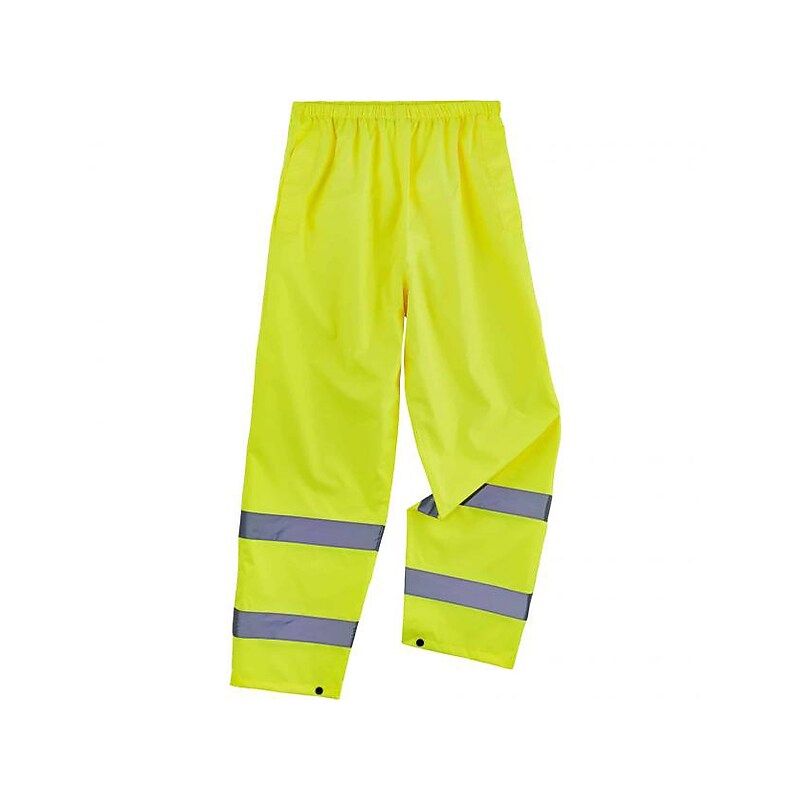 The Ergodyne Glowear 8916 lightweight high-visibility rain pants are Class E pants that provide protection against wet conditions while ensuring safety. An elastic waistband enables comfort to wear alone or over a base layer, with snap cuffs for easy on/off over boots. Built for demanding conditions, these pants are made with rugged yet lightweight waterproof materials and are fully taped at the seams for reliable protection in stormy weather. 2" reflective tape keeps workers highly visible at night or in low-light conditions. Made of lightweight 150D polyester Oxford fabric with a polyurethane coating, comes in brightcolor. Size: XL. Designed for the industrial workplace and workers in low-light environments, flagging crews, utility crews, road construction, railway workers, and any others working in the rain. Offers fully taped and bonded seams locking out water. Features comfortable and flexible waistband, can be worn as the second layer or over the base layer. Pant legs easily fit over boots with two-stage button snaps to keep the wind out. Bright fluorescent fabric increases visibility in the daylight. 2" silver reflective tape reflects light, such as car headlights, for visibility in the dark. Meets or exceeds ANSI/ISEA 107-2015 Supplemental Class E, ANSI Type R Class 3 (when worn with Class 2 upper garment), and third-party standards. For a complete set of high-visibility rain gear add the GloWear 8366 high-visibility rain jacket. Care instructions: machine-washable.