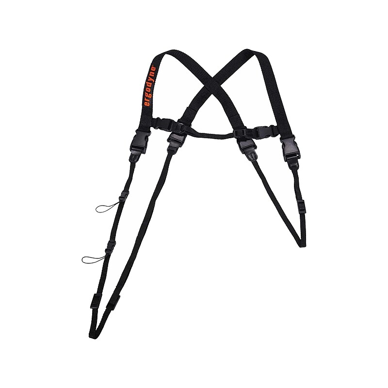 The Squids 3132 barcode scanner lanyard harness keeps barcode scanners secure and accessible during warehouse and distribution work. With its ambidextrous design, the industrial-grade harness maintains a comfortable fit for both right- and left-handed workers while keeping scanners ready for use. Two small loop attachments connect to captive holes built into the scanners, allowing them to hang comfortably on the hip when not in use and preventing damage or injury caused by drops. This lanyard harness is designed for attaching to cordless barcode scanners for work in warehouses, general distribution centers, as well as food and beverage distribution centers. Size: large. Made from heavy-duty materials, comes in black. Ambidextrous design allows for easy reconfiguring for right- and left-handed workers. Prevents drops, keeps barcode scanners close and ready. Webbing straps and buckles curve to fit worker's body, allowing for easy adjustment and long-lasting comfort. Two loop attachments connect to small captive holes built into a cordless scanner for secure tethering to the lanyard harness. Fits most standard jobsite scanners. When necessary, hand wash with mild soap and water and dry.