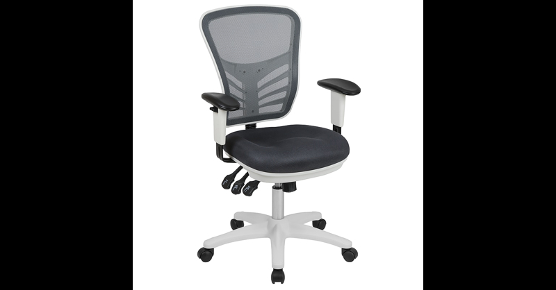Get your work demands down to a minimum and produce your best work on this multifunctional swivel office chair. This chair comes fully loaded to help you take charge of your day. With a ventilated mesh back, you'll have air circulating to your back giving you sweet relief during warm summer days. Make room for this modern beauty, upgrade everyone's chair in the office, granting everyone the ability to have a customized seating experience. Standout features include: an adjustable back height knob; back angle paddle; tilt control paddle; curved back with substantial lumbar support; contour padded swivel seat; adjustable height arms provide relief to your neck and shoulders. Get a supportive ergonomic chair that can keep up with long 8 to 10 hour shifts with ease. This chair is so comfortable it can also be used as a gaming chair while you revel in an intense game against online players. Mesh Executive Office Chairs. Color:Mesh/White Frame; Material: Foam, Mesh, Metal, Plastic, Plywood, Polyester. Ergonomic - Adjustable Built-in Lumbar Support. Overall Dimensions: 25. 5"W x 24. 5" - 27"D x 37" - 44. 25"H. Seat Dimensions: 19" - 24"H x 19. 5"W x 18"D. Back Dimensions: 14"W x 18. 5"H. Adjustable Arms. Rated for up to 300 lbs Based on 6-8 Hours Use. Care Instructions: SW-Solvent and water based cleaner such as foam. Assembly Required. ANSI/BIFMA compliant for safety. Warranty: 2 Years Limited. Contemporary Executive Office Chair with Height Adjustable Padded Arms. Mid-Back Design with breathable mesh material. Built-In Lumbar Support. Back Height Adjustment Knob positions the lumbar support to reduce back pain. Infinite-Locking Back Angle Adjustment helps reduce disc pressure by changing the angle of your torso. Multi-Tilt Lock Mechanism rocks/tilts and locks the chair in infinite positions. Tilt Tension Adjustment Knob adjusts the chair's backward tilt resistance. ContouredMesh Upholstered Seat with CAL 117 Fire Retardant Foam. Pneumatic Seat Height Adjustment. 5-Star White Nylon Base with Dual-Wheel Casters. Revamp your office space with a ventilated mesh office chair that will make a great addition in modern and industrial spaces.