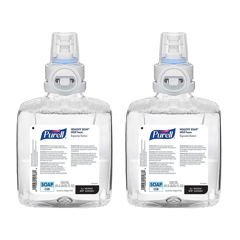 Show you care about well-being with PURELL HEALTHY SOAP Mild Foam. The luxurious foam soap is exceptionally mild for a gentle hand cleaning experience. Plus, it nourishes as it cleans, thanks to moisturizers that support your skins natural ability to protect itself against dirt and germs. This mL refill for the PURELL CS8 Automatic Hand Soap Dispenser is designed for cost and labor savings. Each refill features Energy-on-the-Refill technology, which means it comes equipped with its own battery. The dispensers large sight window provides a visual cue that allows you to monitor sanitizer levels with just a look. Research shows that 80% of people said seeing PURELL products left them with a positive overall impression of the business, so show you care about the well-being with PURELL HEALTHY SOAP Mild Foam. This exceptionally mild foam soap nourishes hands with natural moisturizers and is dye-free, hypoallergenic, and fragrance-free. Refills feature a factory-sealed nozzle to help eliminate the risk of contamination. Each PURELL Hand Soap Refill is equipped with Energy-on-the-Refill technology that integrates a battery onto the refill to eliminate battery replacements. Case Includes: 2 PURELL HEALTHY SOAP Mild Foam, Fragrance Free, mL Refills for the CS8 Automatic Soap Dispenser; CS8 dispensers (7834-01 and 7830-01) are sold separately. A certified Women-Owned Business manufactures this product. Show you care about the well-being of people in your facility with PURELL HEALTHY SOAP Mild Foam, an exceptionally mild and luxurious foam soap.