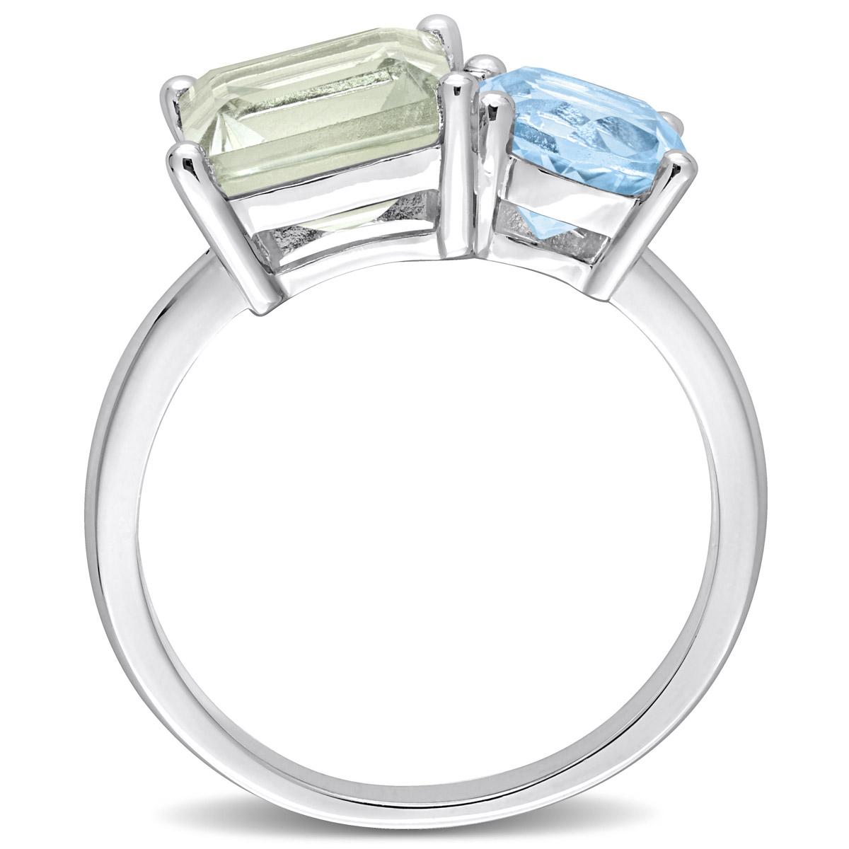 Gemstones Classics(tm) Octagon Green Quartz & Sky Blue Topaz Ring