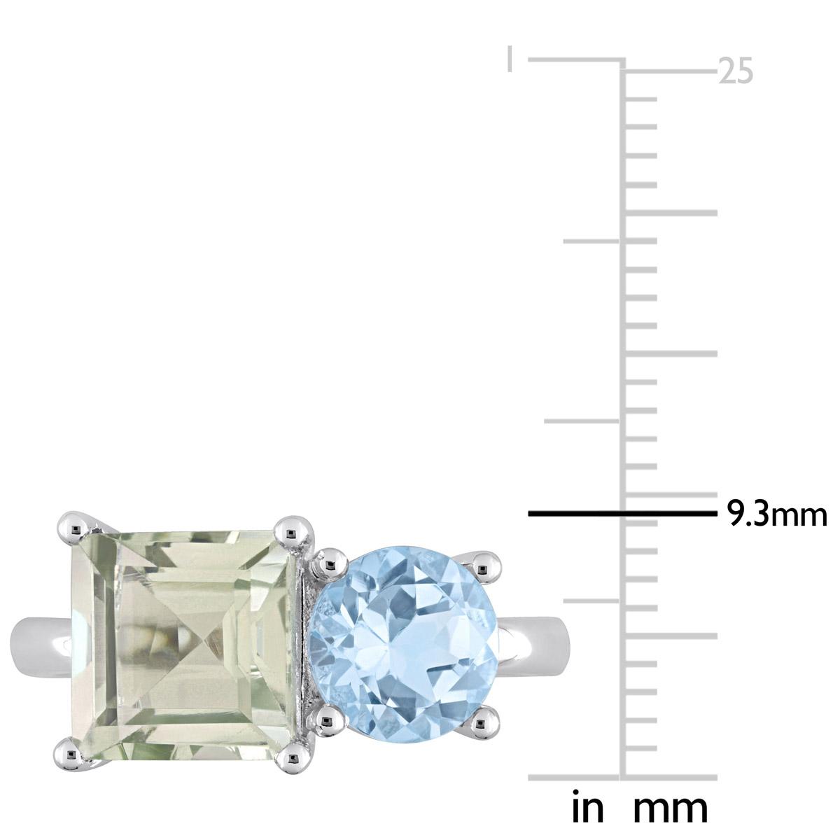 Raise your glam quotient with this colorful Gemstones Classics(tm) octagon green quartz and sky blue topaz 2-stone ring. Crafted in lustrous sterling this vibrant ring showcases one octagon-cut prong-set green quartz and one round prong-set sky blue topaz studded elegantly on a sleek band. Enhanced with a brilliant finish, this beautiful ring is the perfect accessory for a summer look. Stone color: Green/Blue.