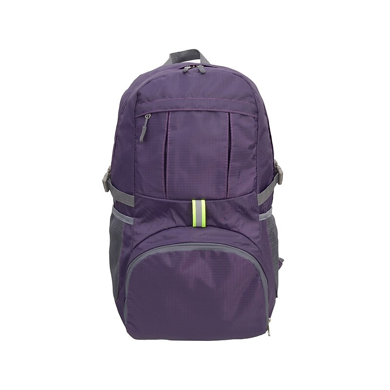 The multipurpose, lightweight, foldable backpack by Nicci is roomy, secure, and compact. Featuring two front pockets for handy storage and convenient organization. The upper hidden-zip pocket is great for storing your cell phone, passport, or other important items, and the lower zip pouch adds additional storage and also converts into a convenient, space-saving storage pouch to pack away your backpack when not in use. The interior main compartment features a pocket for your tablet or laptop. Two side mesh pockets, wide shoulder straps, and auxiliary belts make this foldable backpack even more comfortable to carry. Laptop backpack makes travel with electronics simple. Made of high-quality and lightweight anti-wear, tear-resistant, waterproof polyester in solid Fits a small laptop up to 12" and tablets of various sizes. Backpack size: Large. Main interior compartment features a pocket for your tablet or laptop. Features two front pockets for handy storage and convenient organization. Upper hidden zipper pocket is great for storing your cell phone, passport, or other important items. Lower zip pouch adds additional storage and also converts into a convenient, space-saving storage pouch to pack away your backpack when not in use. Two side mesh pockets, wide shoulder straps, and auxiliary belts make this foldable backpack even more comfortable. Top carry handle makes it easy to grab the backpack and go. 90-day manufacturer limited warranty.