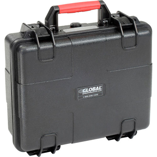 Global Waterproof Hard Case W/Pinch Tear Foam 11"L x 9-11/16"W x 4-3/16"H, Black The outdoor case is designed to protect your equipment from extremely harsh environments. This lightweight and waterproof case is an ideal choice when you need to carry your valuable equipment or sensitive tools securely. With this hard shockproof/crushproof case, you can rest assure that your valuables are securely protected from damage. 1 year limited warranty. Features: Made of an anticorrosive ABS material Reinforced edge-to-edge crushproof design Customizable pre-perforated cubed foam Egg crate foam case liner to keep items in place Reinforced soft grip foldable handle to allow the case stackable Two latch with padlock slots (padlock not included) An O-Ring seal which forms a watertight seal when closed with the double grasping latch external Auto pressure equalization valve protects items while flying anticorrosive material IP67 and C-4150-J Certified Meet ATA Specification 300 Withstand the temperature of -13 F to 130 F.