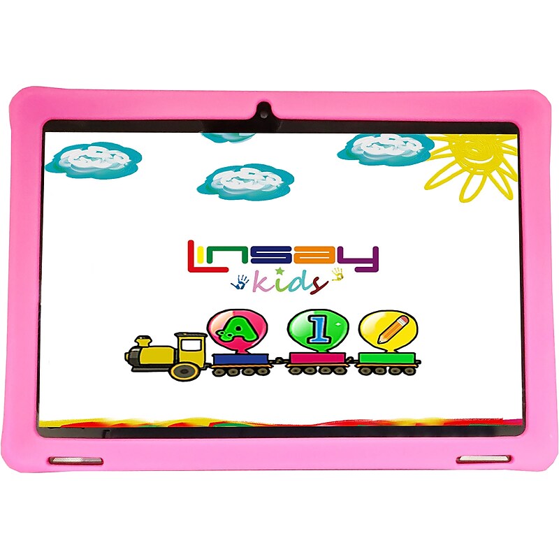 Stay connected with the easy-to-use Linsay capacitive tablet bundle with Google Android 13. This high-tech tablet is a flexible and powerful mobile Internet solution. Multitask with the capacitive touch screen and Android operating system, and customize your home screen with favorite games, social media tools, productivity apps, and more. E-mail, browse the web, and reach out to friends and family no matter where you are, right from your handheld device. Capture and share all of life's best moments with the tablet's built-in camera. Listen to your favorite music, or watch TV and movies with clear audio through built-in stereo speakers. No matter how you choose to use your device, this tablet offers a powerful solution for both productivity and entertainment. Tablet is just 2" thin and weighs only 3 lbs. , so you can take it wherever you go. 10. 1" display with IPS technology and 1280 x 800 resolution. 1. 2GHz quad-core processor for reliable operation. Android 13 offers an intuitive user interface with smooth multitasking. 64GB internal storage and 2GB RAM for easy multitasking. Battery life: 5 hours. Offers Wi-Fi connectivity. Capture and share all of life's moments with the tablet's built-in camera. Listen to your favorite music, or watch TV and movies with clear audio through built-in stereo speakers. Dimensions: 6. 5"H x 10. 5"W x 2"D. Comes with a pink kid's defender case. 1-year manufacturer limited warranty. ⚠ WARNING: This products can expose you to chemicals including Lead and Lead Compounds, which are known to the State of California to cause birth defects or reproductive harm. For more information go to www. P65Warnings. ca. gov.