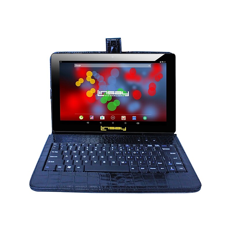 Linsay tablets are the first tablets to be powered by the 1. 2GHz 64-bit quad-core processor Cortex A53. This tablet comes with a 2GB DDR3 SDRAM to provide faster app launches and website load times, smoother multitasking, and better overall performance. The tablet also provides 64GB of internal memory and a microSD card port supporting up to 512GB. Tablet is just 2" thin and weighs only 3 lbs. , so you can take it wherever you go. 10. 1" display with IPS technology and 1280 x 800 resolution. 1. 2GHz 64-bit quad-core processor Cortex A53 for reliable operation. Android 13 offers an intuitive user interface with smooth multitasking. 64GB of internal storage, expandable up to 512GB, and 2GB DDR3 SDRAM for easy multitasking. Up to 5 hours of battery life. Features 802. 11/b/g for Internet web browsing. Camera: 0. 3MP (front), 2MP (rear). Built-in microphone and surround sound stereo speakers for expansive, rich audio. One mini-USB port. Dimensions: 6. 5"H x 10. 5"W x 2"D. Bundle withcrocodile-style leather keyboard case. 1-year manufacturer limited warranty. ⚠ WARNING: This product can expose you to chemicals including Lead and Lead Compounds, which are known to the State of California to cause cancer and birth defects or other reproductive harm. For more information go to www. P65Warnings. ca. gov.