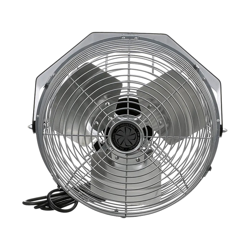 This TPI Workstation fan features a pull chain switch, three-speed control, and coated steel guards. Its head rotates 360 degrees vertically and horizontally. Industrial mounted fan with rotate function is a great solution to get airflow and save space. Features three-speed control. Dimensions: 15. 25"H x 14. 5"W x 9. 5"D. Fan head can rotate 360 degrees vertically and horizontally. Comes in gray grill and black yoke. Equipped with 10' long SJT type 3 conductor cord. Motor features: 1/12 HP, 120V, one-phase, sleeve bearing, totally enclosed, permanently lubricated. Speed: 900 CFM (high), 800 CFM (medium), 700 CFM (low). Switch type: pull chain. Designed to move air in up to 50 sq. ft. area. Ships fully assembled. Meets or exceeds OSHA, cETLus standards. 1-year manufacturer limited warranty. ⚠ WARNING: This product can expose you to chemicals including nickel which is known to the State of California to cause cancer, and chromium, which is known to the State of California to cause birth defects and/or reproductive harm.
