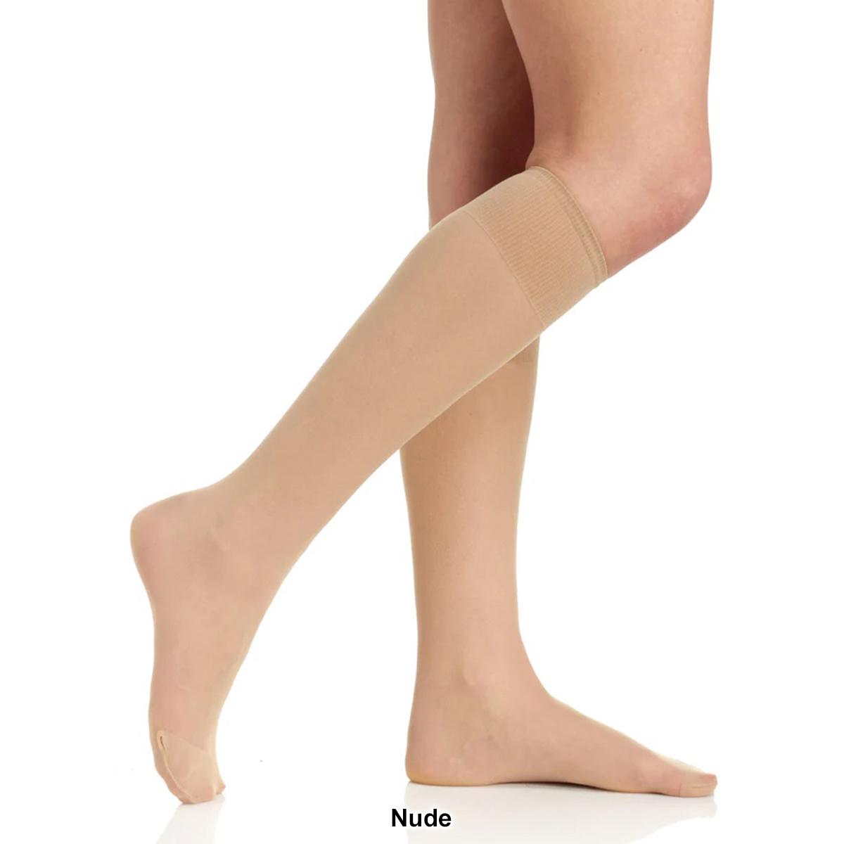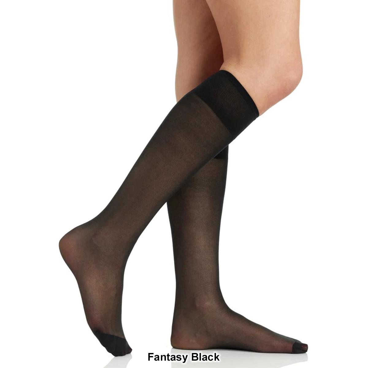 The Womens Berkshire 3-pack all day sheer knee high hosiery with a reinforced toe is a great option to wear under any outfit for that sleek feel. Style 6528 Hand wash Dry flat Materials: Nylon, Spandex.