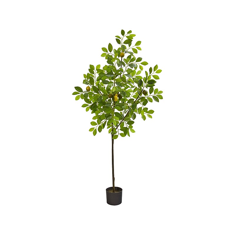 Keep your home feeling fresh all year round with this Nearly Natural artificial lemon tree featuring a thick collection of bright, vivid leaves accented throughout with realistic lemons. Standing 61" tall from its accompanying pot nestled with natural moss, this lifelike tree will instantly bring life to bare spaces. Lemon tree is great for home or office. Comes Tree size: 61"H x 17"W x 17"D. Indoor tree. Pot size: 5"H x 6"W x 6"D. Pot comes in black.