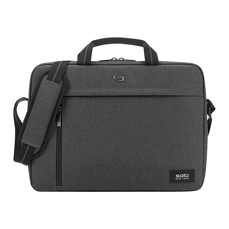 Inspired by the exciting buzz of Manhattan, this is a stylishly laid-back laptop briefcase from the Solo Downtown collection. Fully padded laptop compartment fits up to 15. 6". Front zippered pockets for all your office accessories. Comfortable handle and adjustable shoulder strap for easy portability. Overall dimensions are 11. 5"H x 16"W x 2. 5"D. Back strap slides over lugage handle. Unisex design. 5-year manufacturer limited warranty. ⚠ WARNING: Cancer and Reproductive Harm - www. P65Warnings. ca. gov.