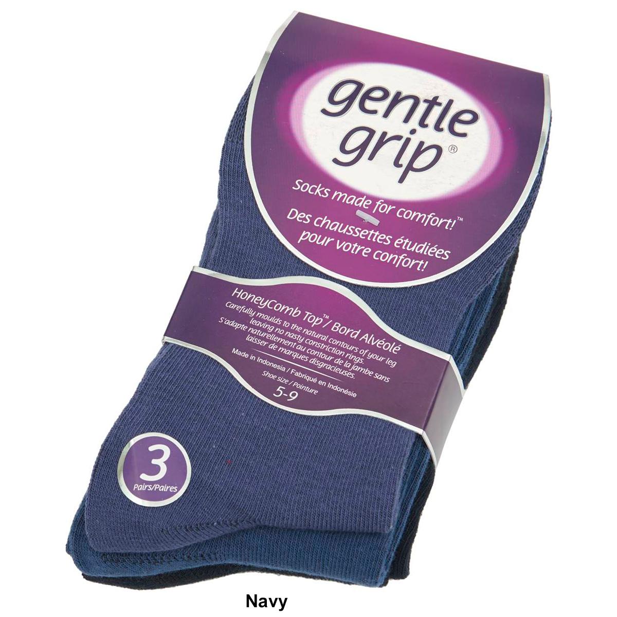 Made for comfort these Womens Gentle Grip 3-pack solid crew socks are non binding. Providing a honeycomb top and cotton blend for a fresh and dry feeling all day.