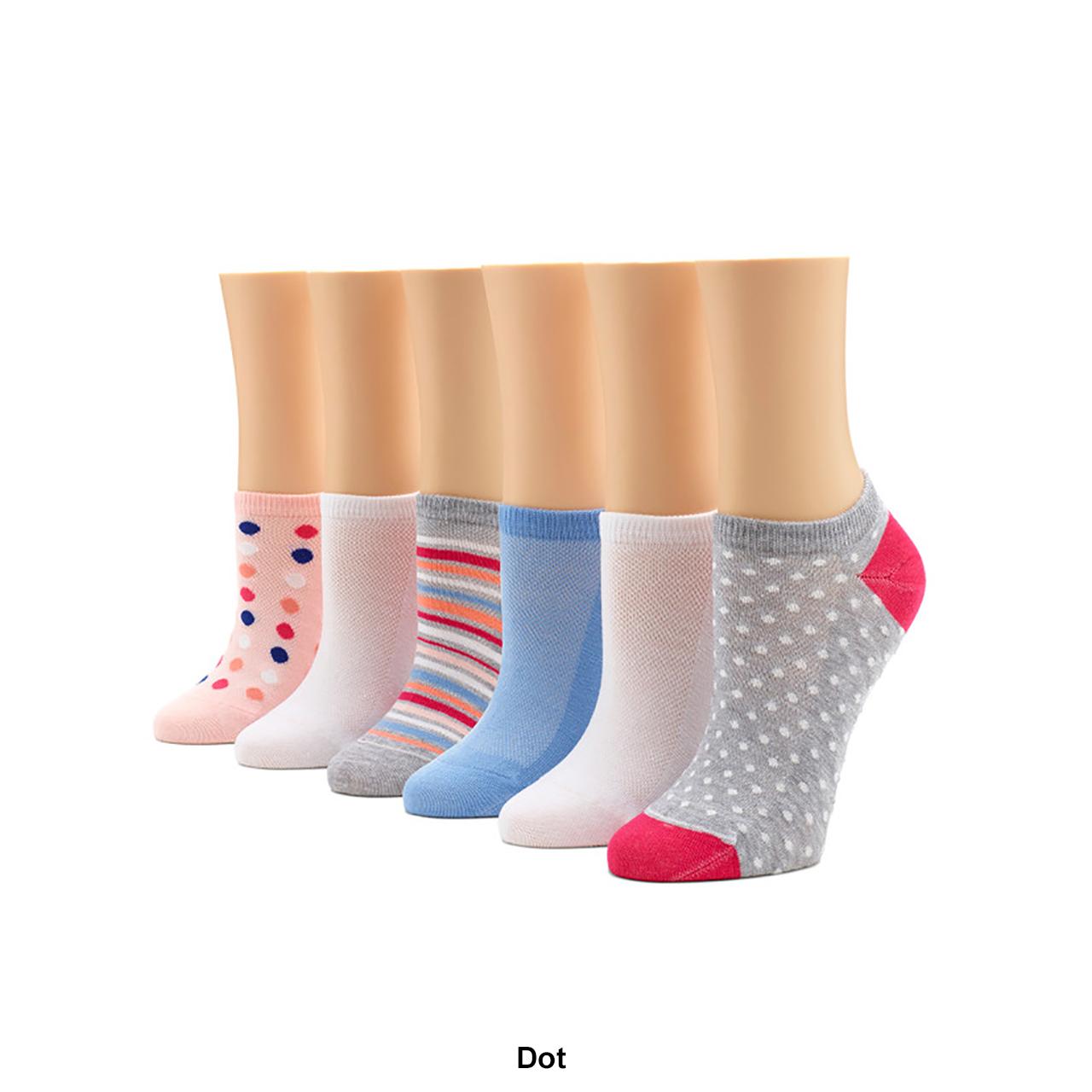 The Womens HUE(R) cotton mesh sport 6-pack no show socks are a low profile sock that is perfect for all activities. Reinforced heel and toe with mesh on the top for good breathability.
