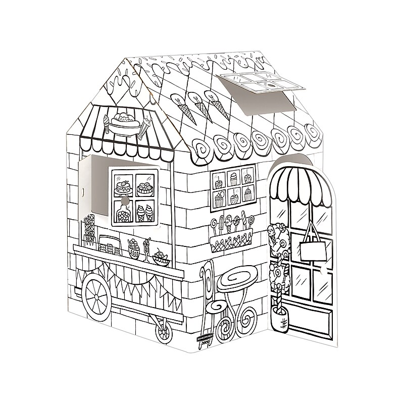 Keep the kids occupied while at home with this interactive Bankers Box At Play playhouse that they color themselves. It's a perfect stay-at-home project that engages for hours. The 32-ECT corrugated board with kid-friendly rounded edges provides strength and safety for hours of play. Use markers, crayons, or paint to decorate your treats 'n eats playhouse any way you want. Interactive playhouse with a restaurant pattern for coloring. Made ofcorrugated board with kid-friendly rounded edges for added safety. Dimensions: 47. 75"H x 32"W x 38"D. Use markers, crayons, or paint to decorate it. Easy two-piece assembly. Features operable windows and doors. Meets or exceeds ASTM F963 standard. For children ages three and up.