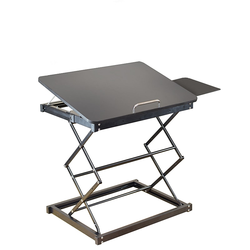 The Uncaged Ergonomics laptop stand quickly converts to a laptop standing desk. This small, compact laptop stand is perfect for working on a laptop seated or standing. Adjust the tilt, height, and mouse pad to perfectly position your laptop for optimal comfort. Comes metal. Dimensions: 18. 6"H 16. 25"W 12. 25"D. Move between sitting and standing quickly. Height range: 2. 6", 8. 75", 15. 25", 18. 6". Panel tilt: 0 degrees, 16 degrees, and 25 degrees. Ambidextrous 7" 7" mouse pad: connects to the right or left; easily removable. 90-day manufacturer limited warranty.