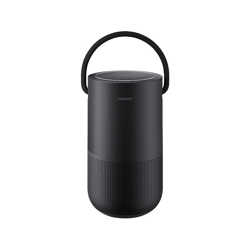 This Bose speaker is a wireless home speaker, a portable Bluetooth speaker, and a voice-controlled speaker, all in one. You can move it from room to room and when you leave home, you can take it with you. Anywhere with Wi-Fi, you can control it with your voice and stream music directly from the cloud. Outside the Wi-Fi range, you can control it like any other portable speaker with your mobile phone or tablet via Bluetooth and listen to anything you can play on your device. And no matter what you listen to or where you listen to it, you'll hear it all in 360 degrees of astonishing Bose sound.portable wireless Bluetooth speaker is great for use indoors and out of the house. Dimensions: 7. 54"H x 4. 69"W x 4. 09"D. Stay connected and wireless with Bluetooth connectivity (up to 33' range), or control this smart speaker with your voice, and stream music directly from the cloud anywhere with Wi-Fi. Powered by a rechargeable battery. 15W speaker. Enjoy 360 degrees of deep, clear, lifelike sound, no matter what you listen to or where you play it. Use this speaker around the house, move it from room to room and out of the house, and take it with you wherever you go. Outside the Wi-Fi range, control it like any other portable speaker with your mobile phone or tablet via Bluetooth and listen to anything you can play on your device. IPx4 water resistance level. Up to 12 hours of playtime per battery charge; battery charge time: 4 hours. Download the free Bose Music app to set up your speaker, then use the app to browse through all your music in one place, seamlessly jump between stations, playlists, and services, and keep your speaker's software up to date. Weight: 2. 34 lbs. Package includes: speaker, 4. 92' USB Type-C power cord, and power supply. 1-year manufacturer limited warranty. SMART. PORTABLE. POWERFUL. - Bose Portable Home Speaker.