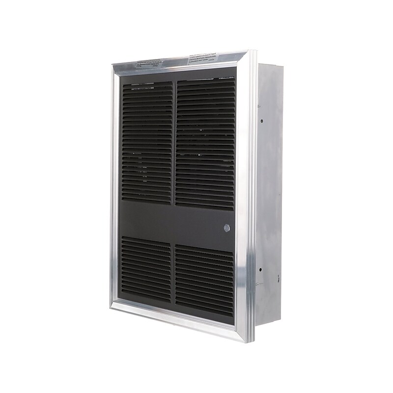 TPI 3320 Series commercial fan-forced wall heater features a heavy 18 gauge steel housing with an extruded aluminum frame. The unit has a thermal overload cut-off for added safety, a fan delay switch, a built-in tamperproof thermostat calibrated to provide a range of 0 degrees F to 110 degrees F, and a manual disconnect switch. Electric fan-forced air heater quickly heats up the space and provides you with the much-needed warmth. Output power: 1500W of comforting warmth; maximum BTUs: 5120BTU/h. Overheat protection: heater will instantly shut off to prevent overheating. Features built-in single-pole tamperproof thermostat. Powder-coated 18-gauge steel grill with extruded aluminum front frame. Sealed tubular heating element with large parallel steel fins for quick heat transfer. Low-speed 600 rpm four-pole motor drives a vane axial blower to deliver a quiet air downflow at 175 cfm. Equipped with disconnect switch, automatic fan delay circuit, and automatic reset thermal limit. Meets or exceeds ETL Listed Mark standard. Required voltage: 120V (12. 5A). Rough-in dimensions: 19. 5"H x 14. 13"W x 4"D; grill dimensions: 20. 84"H x 15. 91"W. Made in the USA. 1-year manufacturer limited warranty. ⚠ WARNING: This product can expose you to chemicals including nickel which is known to the State of California to cause cancer, and chromium which is known to the State of California to cause birth defects and/or reproductive harm. For information go to www. P65Warnings. ca. gov.