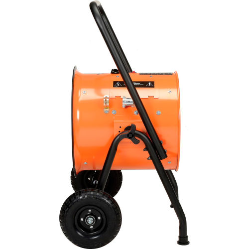 ✓ Ideal for industrial areas seeking temporary localized heat ✓ 10" wheels allow for easy movement ✓ Moves up to 1500 CFM of hot air When you need a solution for providing heat to workspaces on a provisional basis, consider the Global Industrial Portable Salamander Heater W/ Adjustable Thermostat. This heater is ideal for factories, garages, workshops, and other places where temporary localized heat is needed. The electric convection heater features finned tubular heating elements positioned in front of a fan unit to provide even distribution of heat. It is designed to eliminate combustion by products associated with fuel-fired heaters. The tubular steel frame with ergonomic handle and hand screw allows for easy tilt adjustments and the 10" wheels allow for easy movement of unit. On/off switch and adjustable thermostat control knob are mounted on the top of the unit. High-limit thermal cutout switch provide ease of use. Requires 50A circuit breaker. Salamander heaters are designed for direct wire installation. It is CSA and CSAus listed. Easy assembly of handle and wheels. 1-Year Limited Warranty. Access panel allows direct wiring connections 25'L 4/3 SO type power cord is included.
